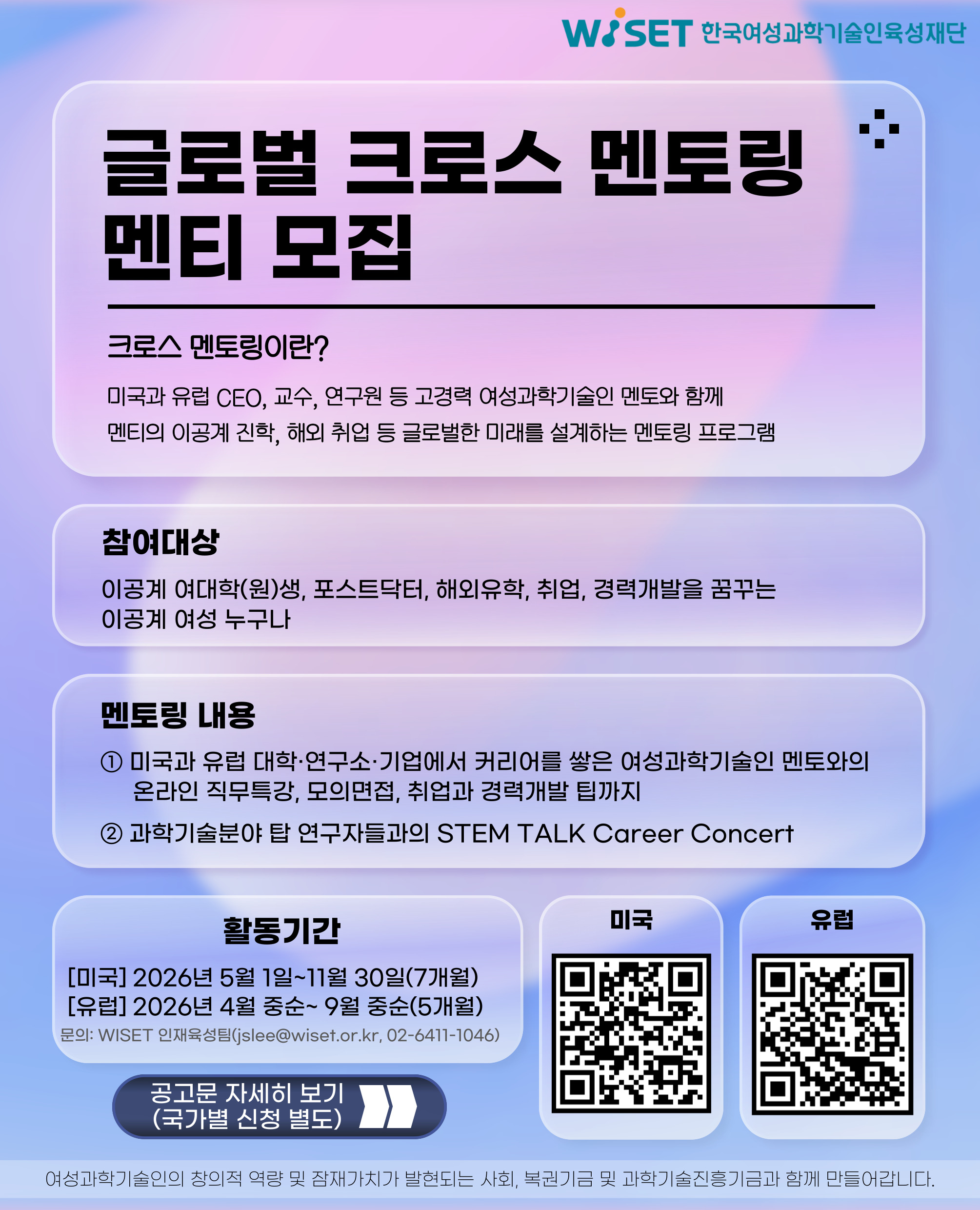 [외부대외활동] 2026 WISET 이공계 여대학(원)생 멘토링 참여자 모